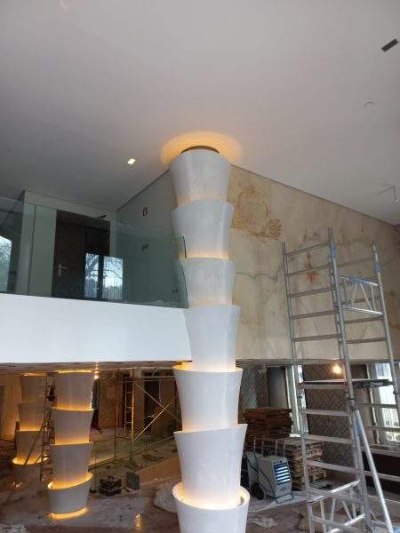 A project with personality, from creation to finishing. We always dedicate our utmost attention to detail and aesthetic genuineness. It was our Intergesso Academy that made the plaster finishes and all the details, contributing to some dazzlingly elegant columns.