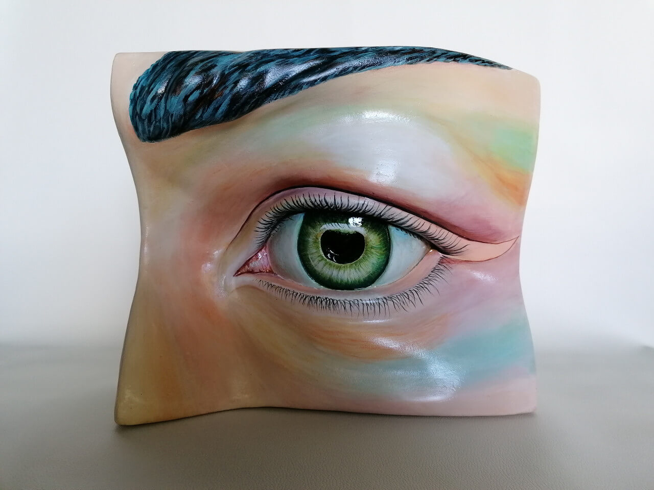 O sentido do tato é representado pelo “toque” dos artistas plásticos que abrilhanta cada uma das oito peças.