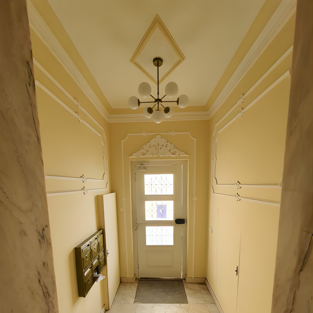 Os florões, originalmente concebidos para aplicação em interiores, foram aqui reinterpretados como elementos decorativos exteriores, assumindo um papel de destaque na fachada e conferindo-lhe carácter, ritmo e distinção. Esta abordagem permitiu valorizar o edifício de forma subtil, respeitando a sua linguagem arquitetónica e acrescentando identidade ao conjunto.